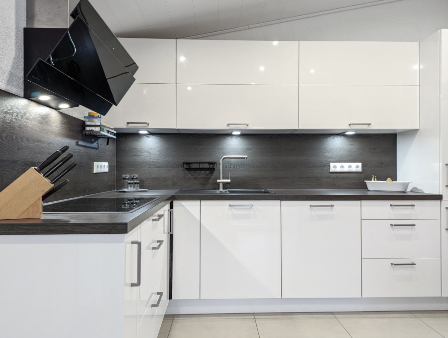 - moderne Nobilia Einbauküche mit Markenelektrogeräten und Induktionsherd