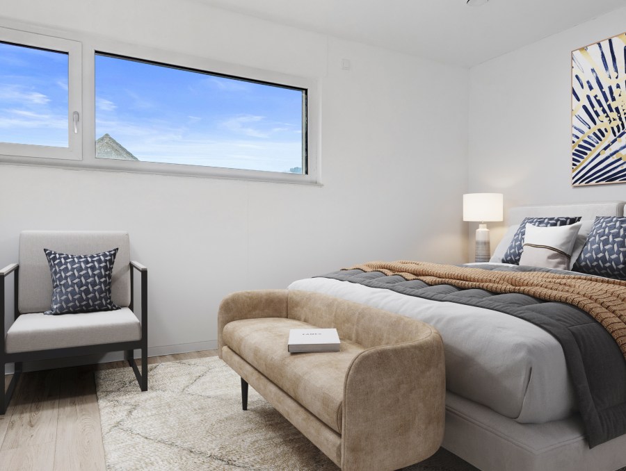 Dieser großzügige Bungalow bietet einen offenen Wohn- und Essbereich mit Küche, drei Schlafzimmer, ein großes Tageslichtbad mit Dusche sowie ein Gäste-WC. Der Dachboden sorgt für zusätzlichen Stauraum. Beheizt wird das Haus durch eine energieeffiziente Luft-Luft-Wärmepumpe. Energieeffizenzklasse A+ - steuerbar über eine Smart- Home - App.