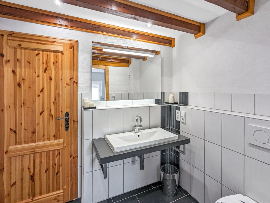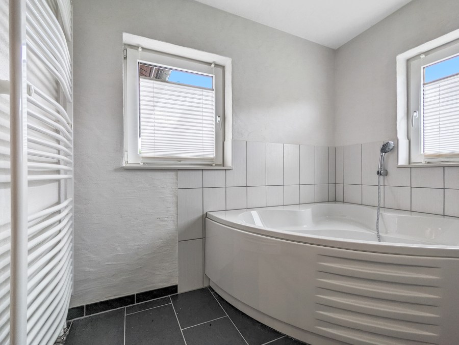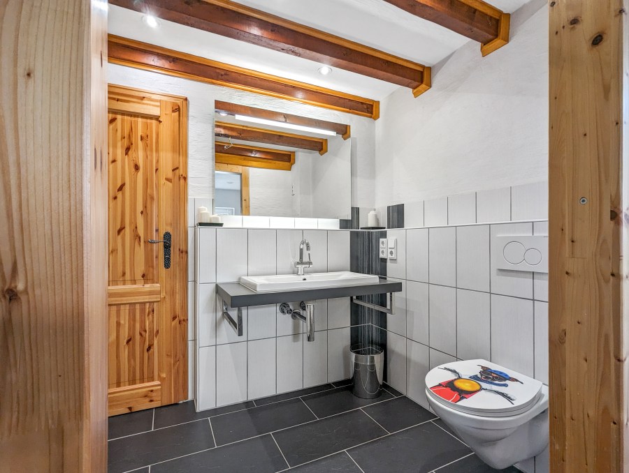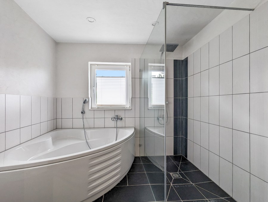 Über eine schöne Holztreppe gelangen Sie auf die Galerie, ein Highlight des Hauses, die Ihnen zusätzlichen Raum für kreative Ideen oder als Rückzugsort bietet. 2 weitere Zimmer mit praktischen Einbauschränken bieten ausreichend Raum für Schlafzimmer, Kinderzimmer, Büro oder Hobby. Ein zusätzliches Highlight ist das moderne, besonders stilvolle Badezimmer. Hier können Sie sich nach einem langen Tag entspannen und zur Ruhe kommen.
