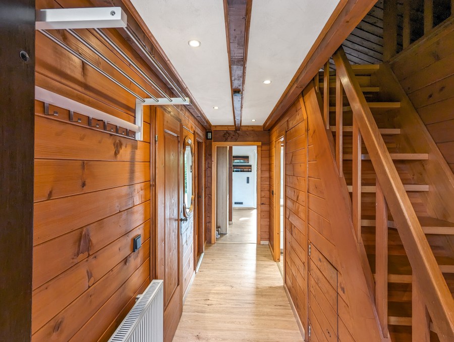 Schon beim Betreten dieses stilvollen Einfamilienhauses in Holzbauweise wird deutlich, dass es stets liebevoll gepflegt wurde.