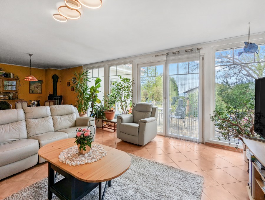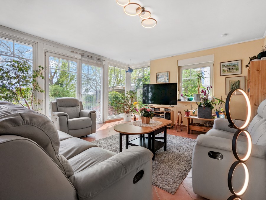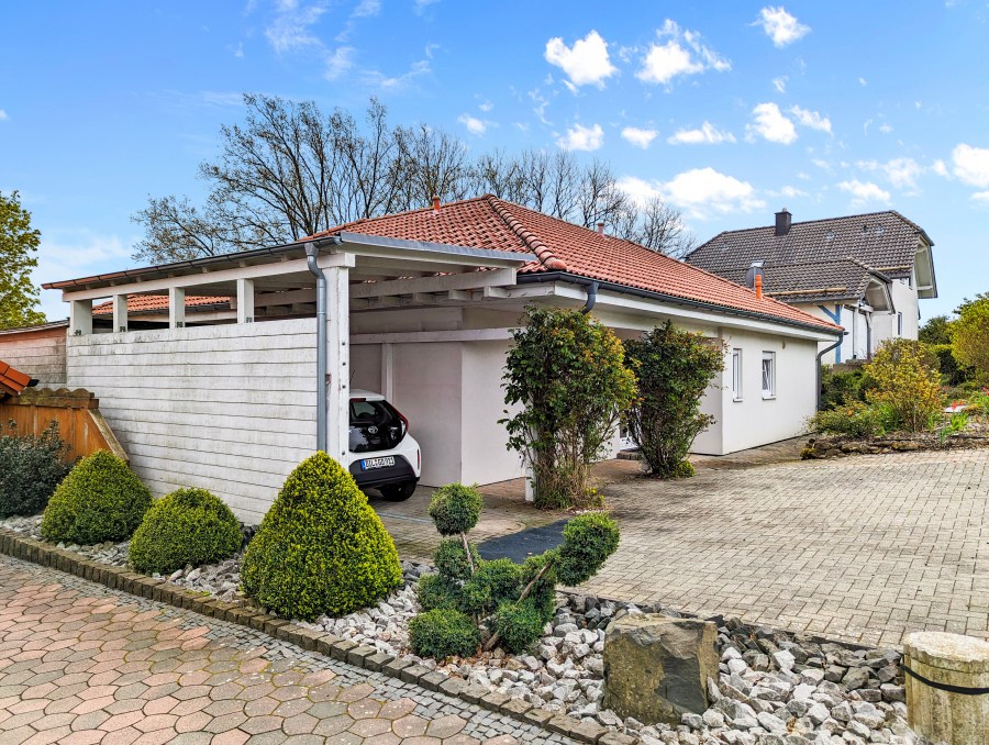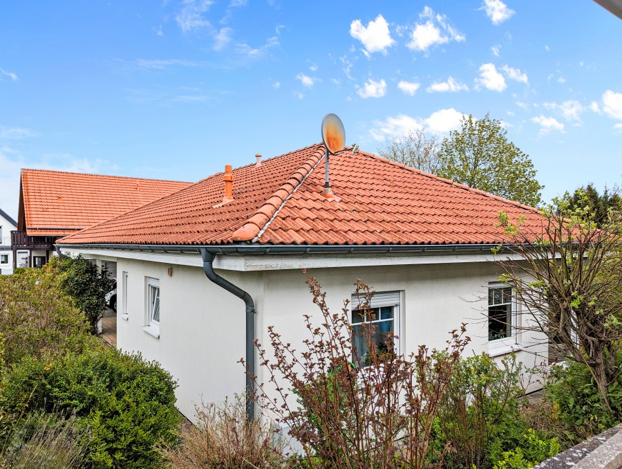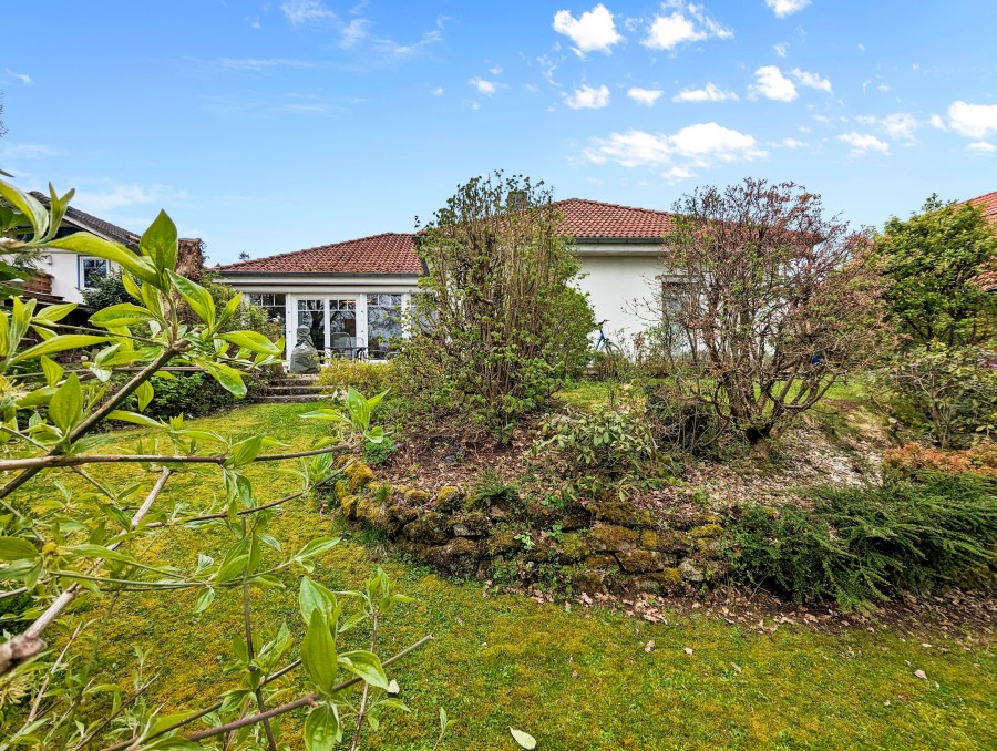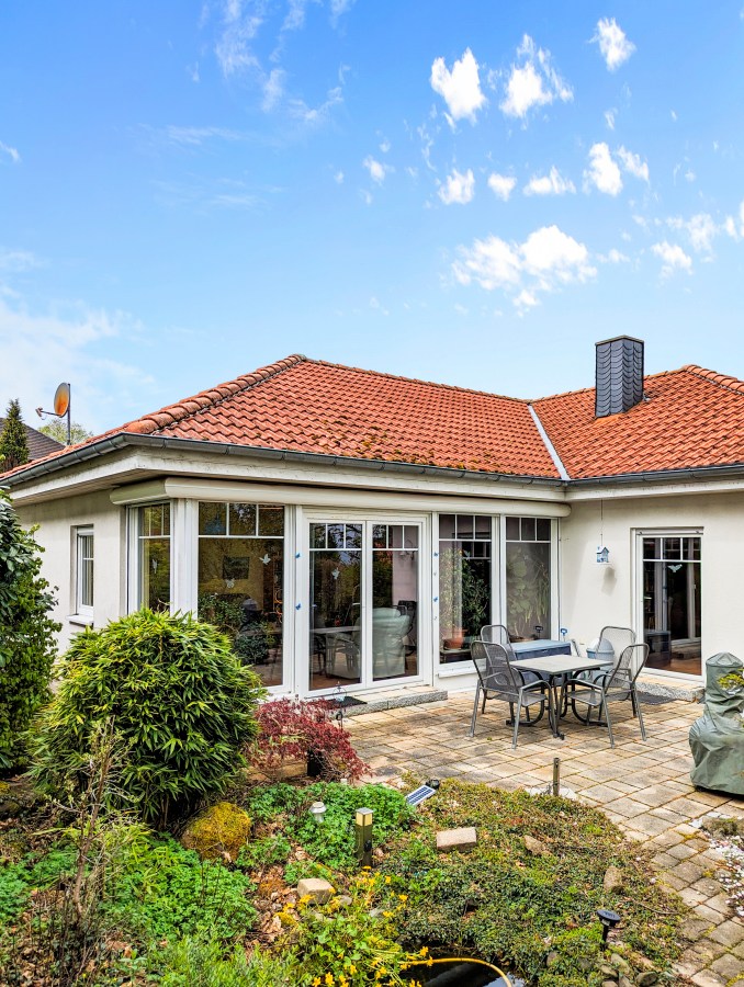 Diese Immobilie lässt keine Wünsche offen! Auf einem ruhig gelegenen ca. 603 m² großen Grundstück steht dieses wunderschöne, sehr gepflegte Haus im mediterranen Bungalow-Stil und bietet Ihnen auf ca. 129 m² Wohnfläche eine optimale Raumaufteilung für die kleine Familie.