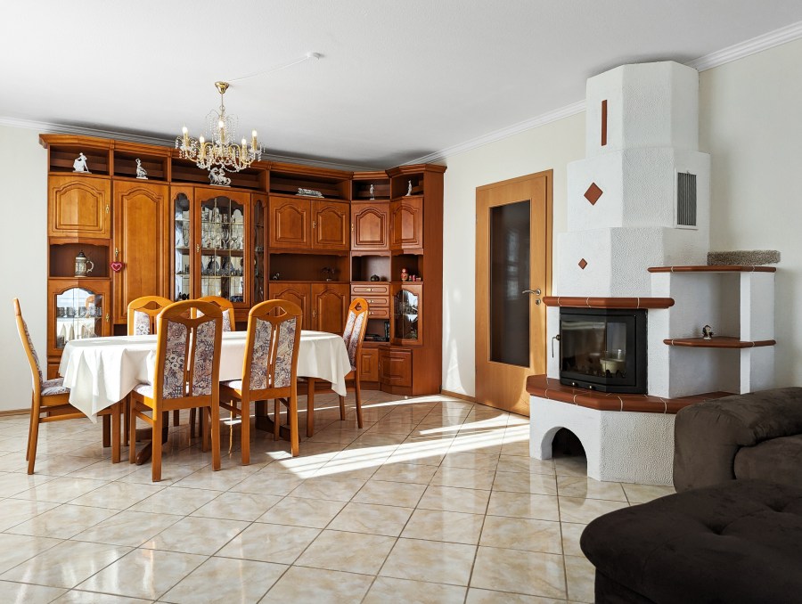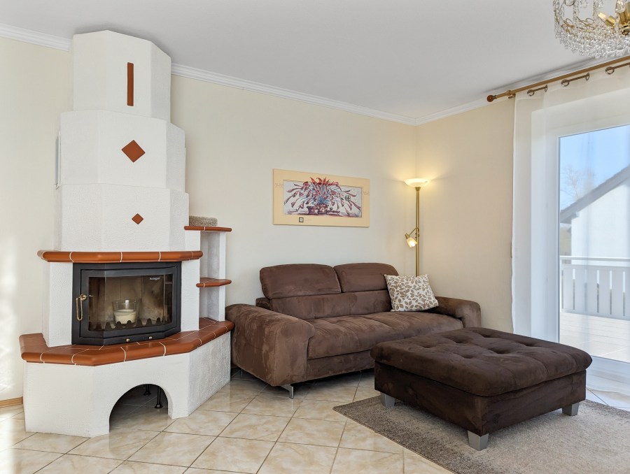 - Großzügiger, lichtdurchfluteter Wohn-/Essbereich mit gemauertem Kamin.