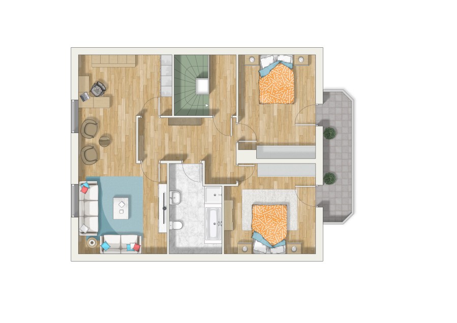 - Flexibilität für die Umwandlung in eine eigenständige Wohnung im Dachgeschoss.