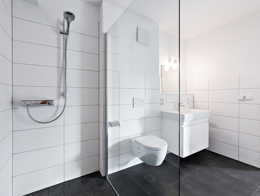 - Breite, ebenerdige Dusche